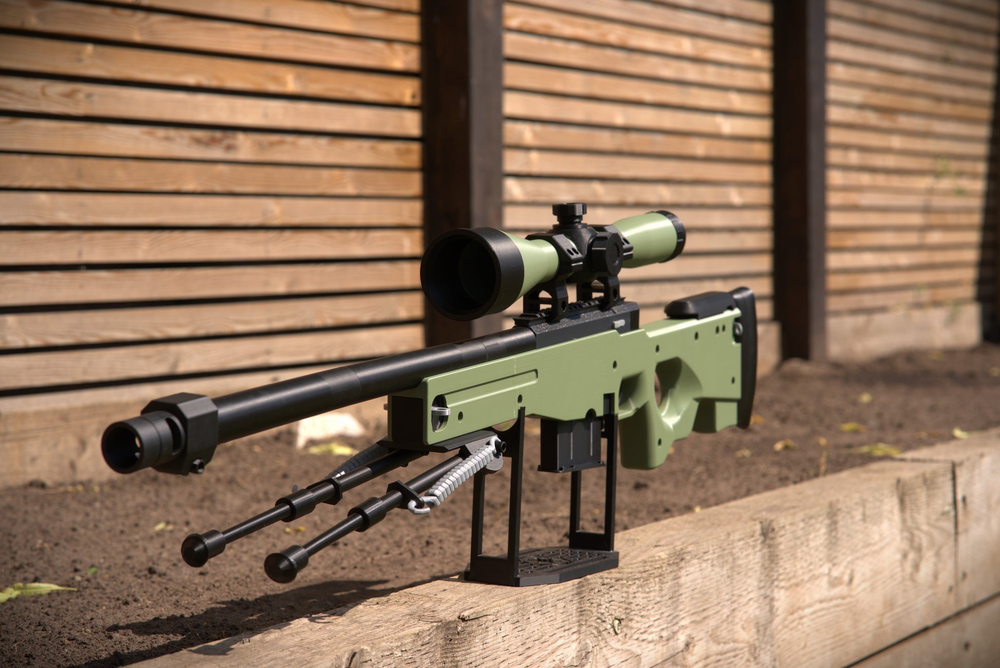 Full size print of the Team Fortress sniper rifle, comes in kit form. Has working shell eject on bolt action. can be glued or bolted together *no bolts provided with kit* (use M3 and M5 bolts)